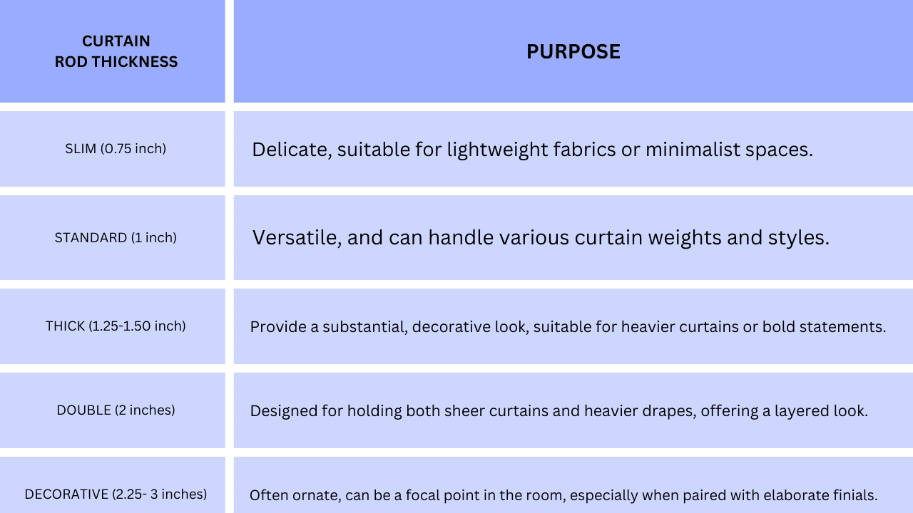 Selecting the right curtain rod thickness is pivotal in achieving a harmonious and functional window treatment. Different rod diameters cater to specific styles, fabrics, and weights of curtains. Here is a guide to curtain rod thickness sizes and their ideal uses: